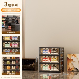 折りたたみ靴キャビネット収納ボックス、設置不要のプラスチック透明靴ラック、家の玄関の防塵靴多層収納靴箱