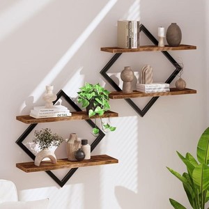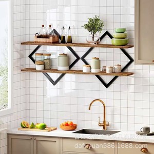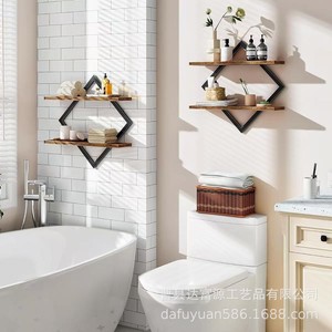 跨境铁木结合支架壁挂式香薰展示架双层墙面杂物收纳架实木储物架