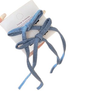 女性用の甘くてクールなデニムリボンヘアピン、ハイエンドの後頭部トップクリップ、エレガントでシンプルなダブルポニーテールヘアアクセサリー