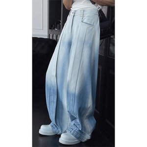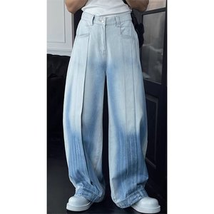 2025 春夏新オリジナルデザインレトロウォッシュジーンズメンズアメカジルーズワイドレッグパンツ