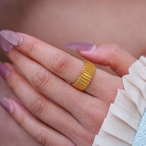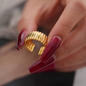 1 個の春と夏のステンレス鋼の波のデザインの調節可能なリング。美しいねじ込みの幾何学的なワイドバンドニュートラルシンプル