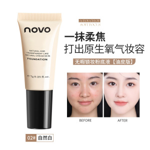NOVO 贅沢な保湿と軽い透明感のリキッドファンデーション、保湿、コンシーラー、保湿、長時間持続するオイルコントロール、パウダーフリーメイクアップ、乾燥性脂性肌に潤いを与えます。