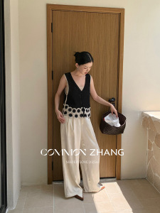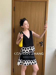CZ ZHANG夏季法式名媛镂空花卉绣花v领休闲百搭毛衣马甲女B24108