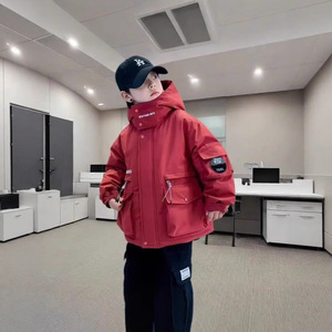 男童加厚工装连帽儿童棉服2025新款安可拉红冬装中大童棉衣潮