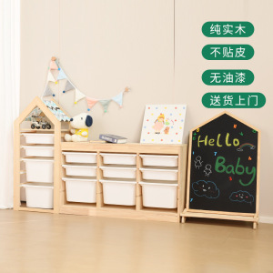 無垢材の小さな家(大)+おもちゃキャビネット3列3段