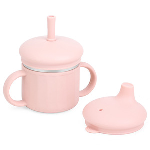 シリコンステンレス鋼の学習ドリンクカップ、飲料水用、アヒルのくちばし、幼児用ミルクカップ、漏れ防止、窒息防止、落下防止学習ドリンクカップ