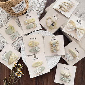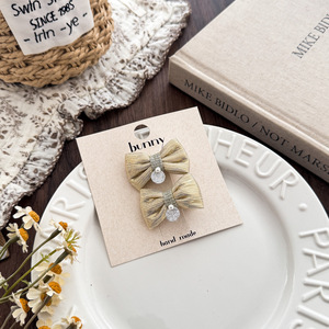 キラキラゴールド生地リボン子供用ヘアピン手縫いパールラブブレイククリップスパンコールヘビーデューティヘアアクセサリーサイド