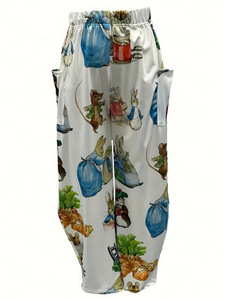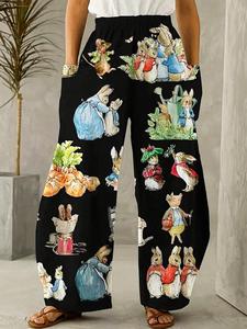 ヨーロッパとアメリカの貿易アマゾンサマーレトロウサギプリント漫画ワイドレッグパンツ - カジュアル、伸縮性ポリエステルミックス