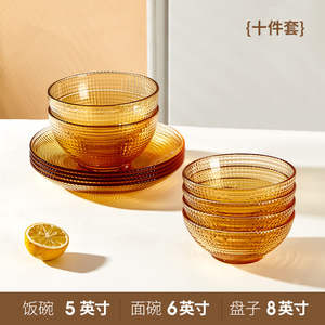 琥珀餐具套装米饭碗面碗汤碗玻璃碗盘碗碟套装耐高温家用大容量