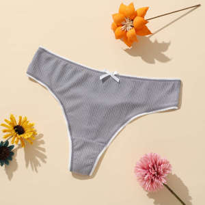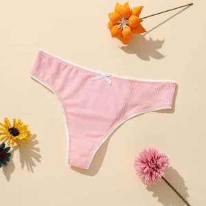 新しい通気性ポリエステルバービーパターン T 字型下着女の子のためのレースの腹部コントロールミッドローウエスト T 字型パンティー女性のためのドロップシッピング