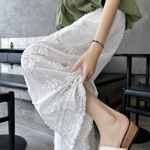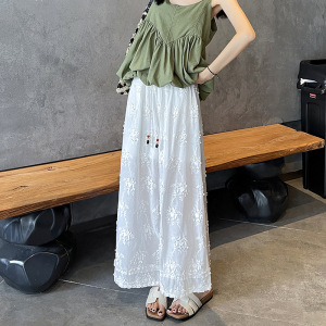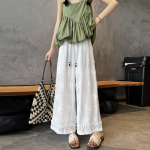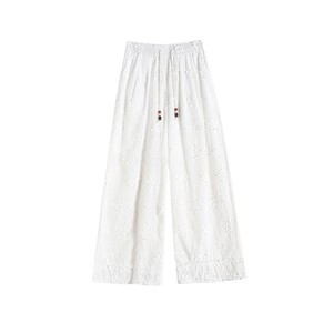 夏エンボスジャカード9点ワイドレッグパンツ女性用2025新作白中空小柄木耳レースストレートパンツ