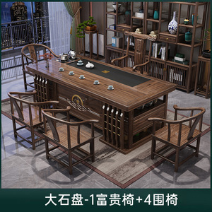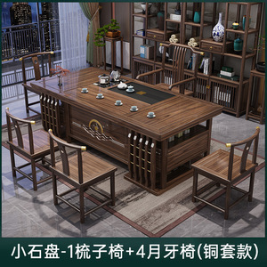 新しい中国風のバルコニーティーテーブルと椅子の組み合わせ無垢材ティーテーブル小さなアパートのティーテーブル一体型禅カンフーティーテーブルセット