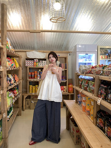 女性用の白いレースアップキャミソール、夏の韓国スタイル、優しくゆったりとしたノースリーブのアウターウェア、ニッチで多用途なトップス