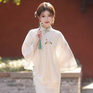 新しいスタイルの中空レースチャイナドレスショールジャケット、レトロな多用途カーディガン付き、中華民国スタイル、若くて日常的に着用できます