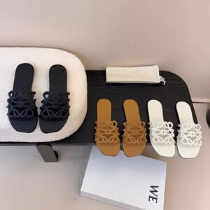 フラットスリッパ、カジュアル2025夏新作ニッチレザー中空ホリデービーチサンダル、アウターウェア用