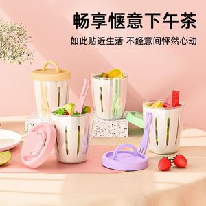 フルーツカップ、朝食サラダカップ、持ち帰りピクニック用、フォーク付き、蓋付き、二層水切りカップ、多目的携帯用