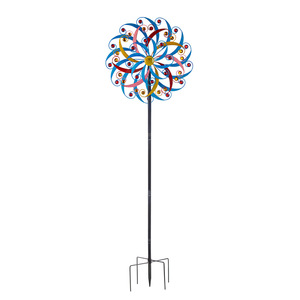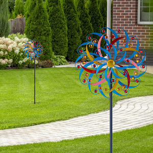 国境を越えた売れ筋の屋外鉄三層カラー風車庭庭風景装飾品風車金属床置き装飾品