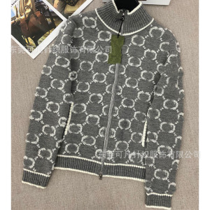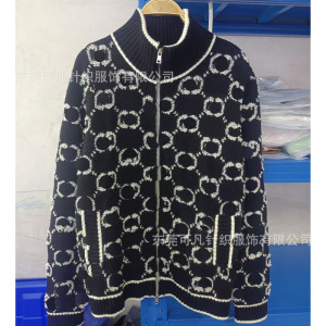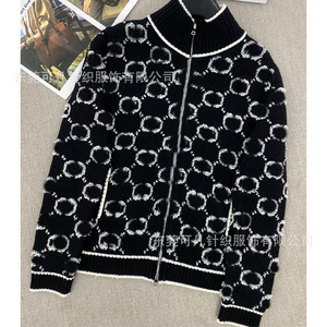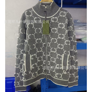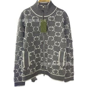G's スタンドカラー ジッパー 長袖 ニット カーディガン 男女兼用 ジャケット トップス ダブルG 植毛 立体文字 ゆったり