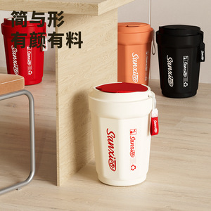 コーヒーカップクリエイティブゴミ箱家庭用リビングルーム寝室車輪付きゴミ箱高価値ダブルバケツ蓋付き収納紙バスケット