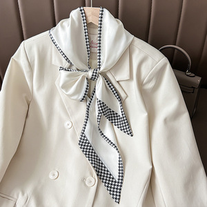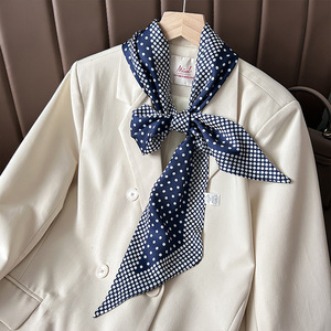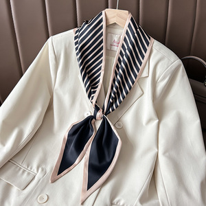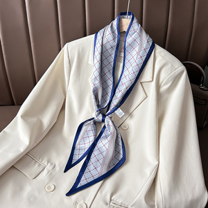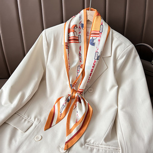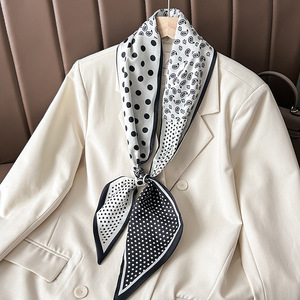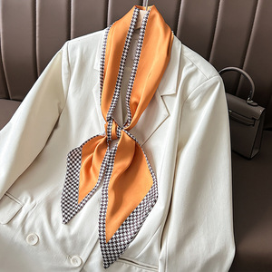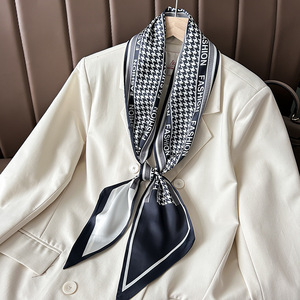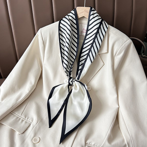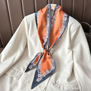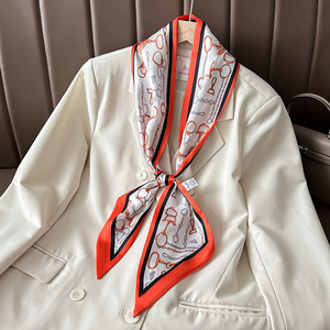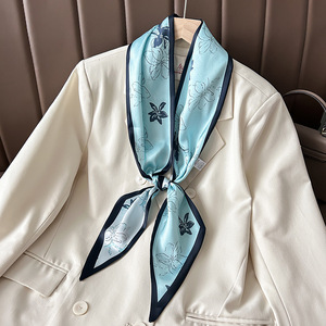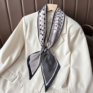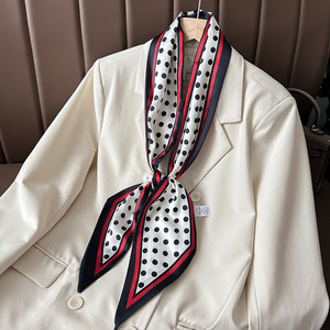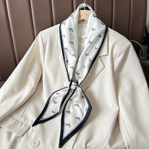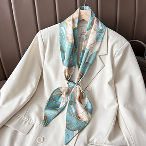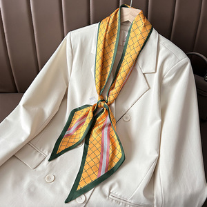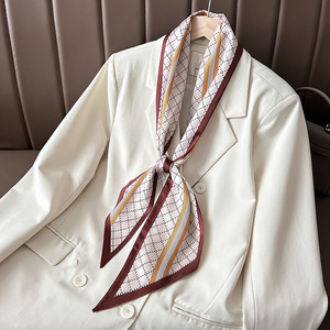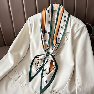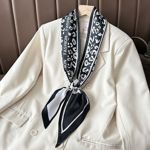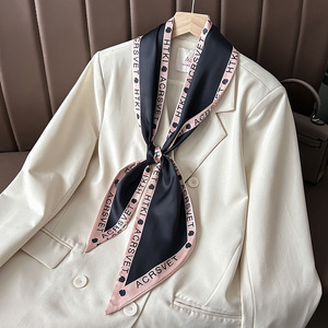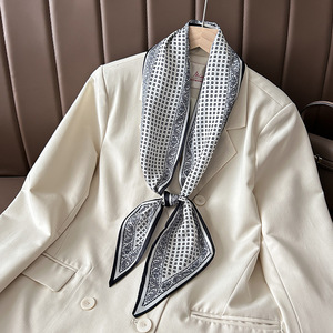 女性用ブラックカシューフローラルロングシルクスカーフ、ハイエンドネックリボン、外出用ヘアタイ、春と秋の薄くて細いスタイル