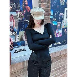必要ないのは難しい〜スリムでスリムなホットガール気質ホットガール純粋な欲望ハーフオープンカラートップわずかに透けるファッショナブルなボトリングシャツ