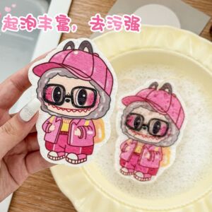 ラブブウッドパルプ綿スポンジキッチン用品漫画クリーニング食器洗い綿ワイパー高効率除染たわし布