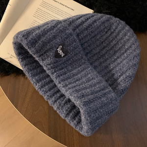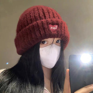 愛の刺繍アンコラレッドニットウール帽子女性のための秋と冬の大きな頭囲耳保護キャップ暖かいプルオーバー帽子