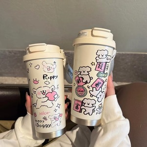 ステンレス製316二重構造断熱コーヒーマグカップ、携帯用、屋外用、男女兼用、卸売、二重構造保温カップ、ストロー付き