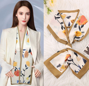 春と秋の女性用の小さなシルクスカーフ、薄い韓国スタイル、多用途の細くて長いスカーフ、ヘアスタイル、スクエアスカーフ、スーツ、シャツ、スカーフ