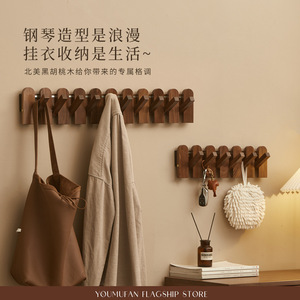 ラウンドブラックウォールナット無垢材ピアノキー洋服ハンガーホーム壁玄関ドア洋服フック玄関ドアコートフック