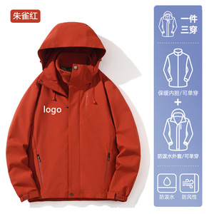 団体購入限定丨ジャケット3in1保温インナー付きアウトドア登山服防風防水ワークジャケットカスタム