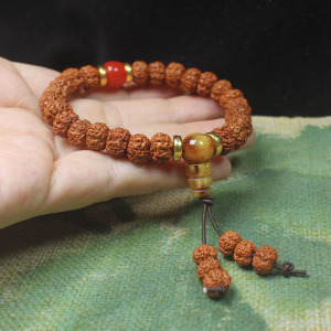 ルドラクシャ スモール ブレスレット [シーヤナギ T シャツ + ゴールドスペーサー + 弟子ビーズ DS 付き]