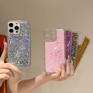 iPhone16Pro用キラキラフレーム付きスマホケース、15ライトラグジュアリーシースルー、14グリッター、13保護ケース、指紋防止
