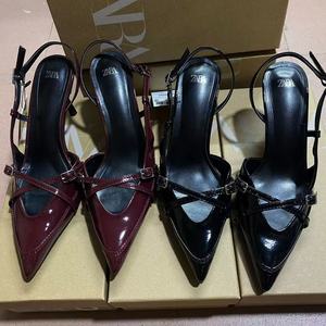 ZA メーカー 2025 夏の貿易クロスバックルベルト付きポインテッドトゥハイヒールサンダル英国スタイルミュラー婦人靴