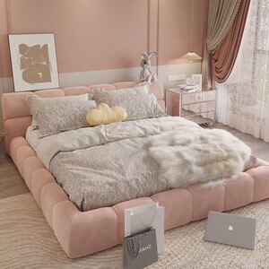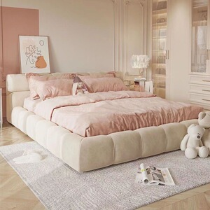 泡芙床奶油风绒布主卧双人床布艺床小户型现代简约家用储物云朵床