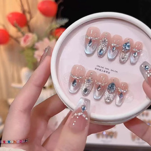 [セリム湖] フラッシュピュアハンドメイドウェアラブルネイルキャットアイブルーダイヤモンドハイエンドホワイトニング10ピースネイルアートステッカー
