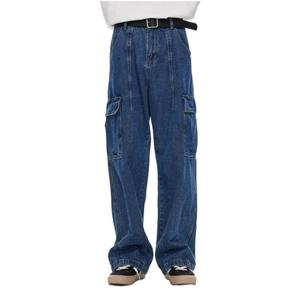 跨境潮流街头美式复古夏季新款直筒宽松深蓝色工装阔腿男士牛仔裤