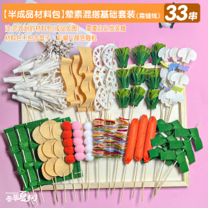 【半完成素材パッケージ】肉と野菜の組み合わせ串33本の基本セット(裁縫板付き)