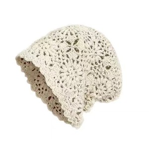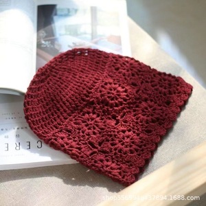 春と秋の女性用日本製手織りつば帽子、薄い中空ウール帽子、レトロな文学ニット帽、パイル帽子