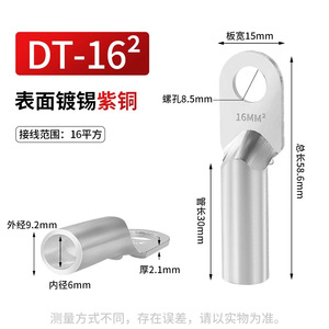 鼻子铜接头DT10/16/25/35/50/70-500平方接线端子堵油线耳插头