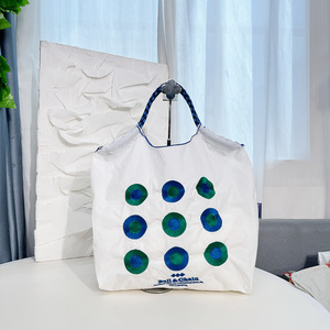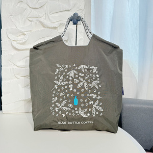 ホット販売女性の大容量ショッピングエコバッグナイロントートボールチェーン刺繍ショルダーキャンバスバッグ