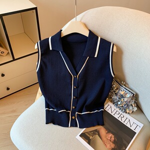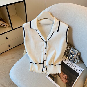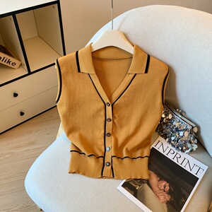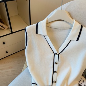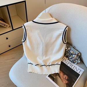 ヨーロッパのリアルショット、ファッショナブルで多用途な女性用Vネックノースリーブセーター、韓国風カジュアル気質、年齢を減らす、スリムなトップ、トレンディ