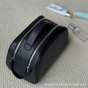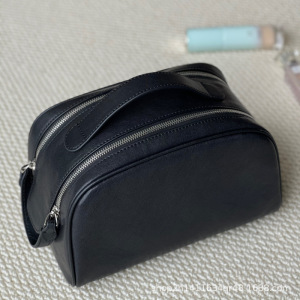 旅行便携化妆包时尚大容量头层植鞣牛皮拉链洗漱包手提化妆袋收纳