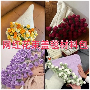 ローズブーケブランケット手織りDIY素材パッケージブーケブランケット完成品クリエイティブギフトフックフラワーブーケ