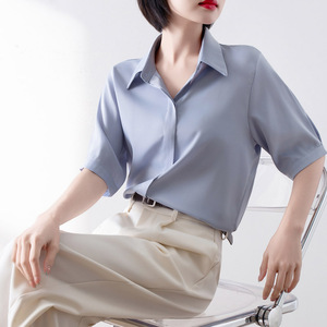気質多用途抗シワ半袖シャツ女性のための 2025 夏の新しいルーズスリムプロシャツ