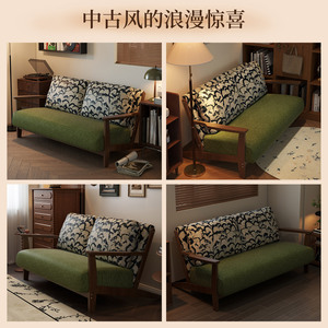 アメリカンレトロ無垢材二人掛けソファ、小さなアパートの寝室、アンティークスタイルの布製の小さなソファ、B&Bの小さなスペース