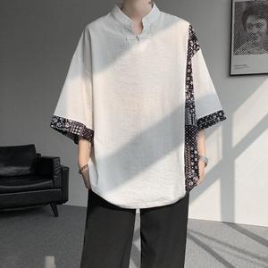 新中式国潮设计感复古短袖T恤男款2025夏季青少年五分袖宽松上衣