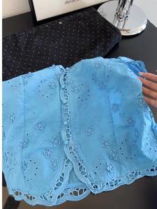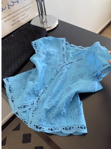 フレンチスタイル中空刺繍花Vネック半袖シャツ女性の夏の新しい甘い年齢軽減ルーズスリムショートトップ