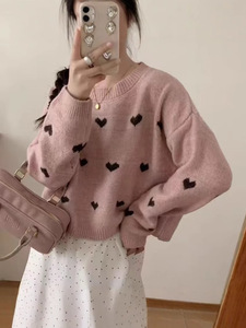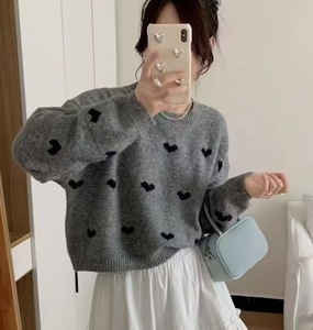 2025 春の優しいスタイルのラブジャカードラウンドネックセーター女性のための怠惰で甘い年齢を減らす西洋スタイルの柔らかいワックスのようなセーター
