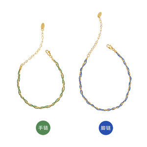 ブレスレットとアンクレット グリーン端午節カラーロープ親友ギフトロイヤルブルーパールセットチタン鋼メッキ18KゴールドSL121
